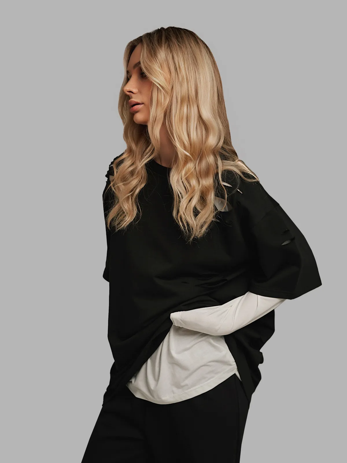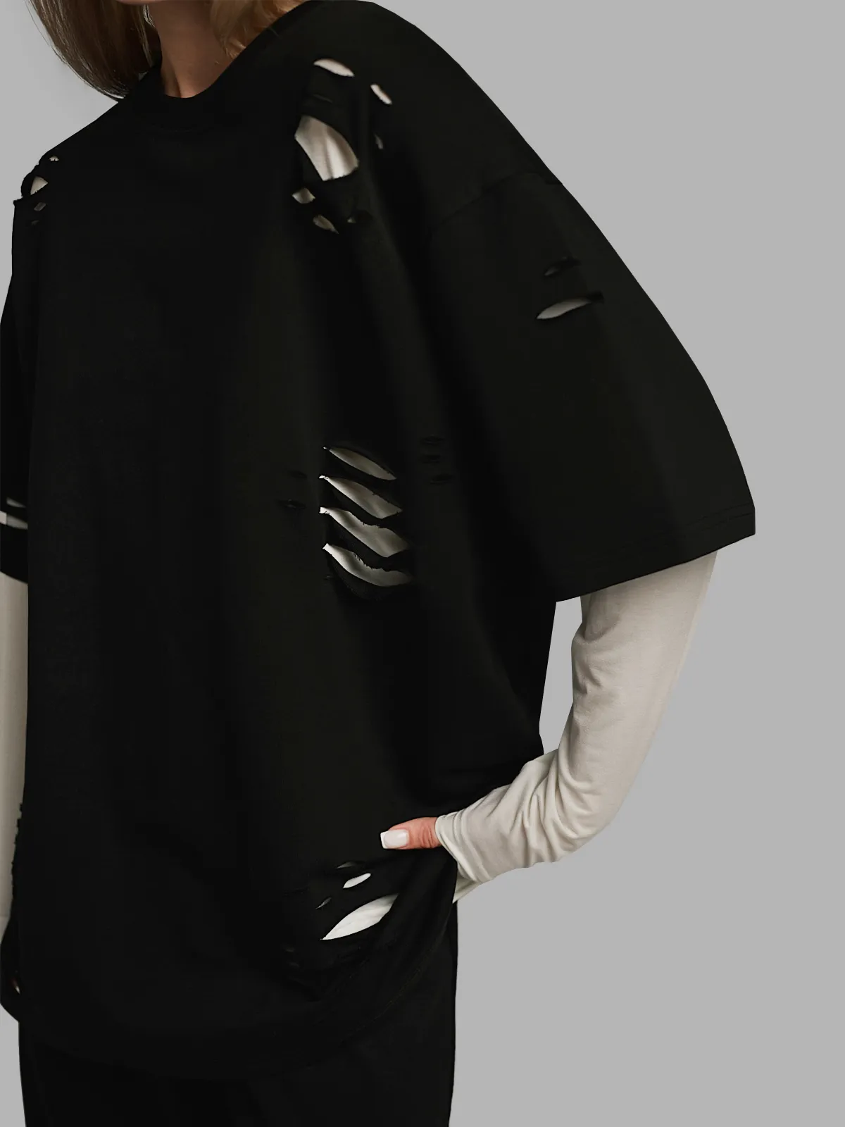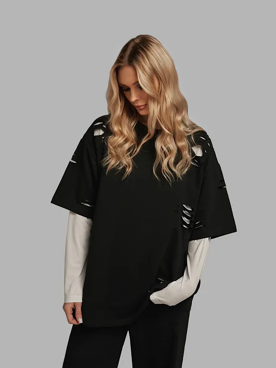 Футболка черная с разрезами
