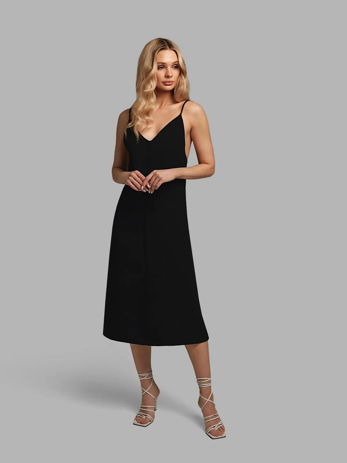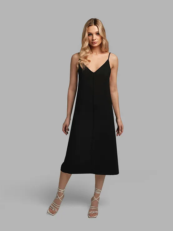 Платье комбинация черное миди
